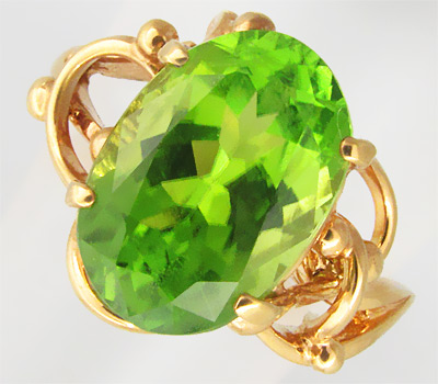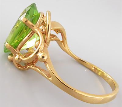 Вашему вниманию предлагается кольцо из золота 585 пробы с красивым ярким перидотом! Ширина площадки 13,5 мм, высота 7 мм. Вес изделия 4,2 г. Размер 18. Ниже приводятся ювелирные характеристики вставки.
