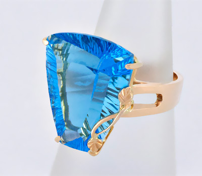 Вашему вниманию предлагается кольцо из золота 585 пробы с топазом авторской огранки! Размеры площадки 20,5 х 18 мм, высота 11 мм. Вес изделия 10,4 г. Размер 17,5. Ниже приводятся ювелирные характеристики вставки.
