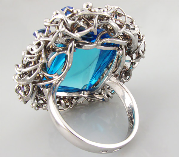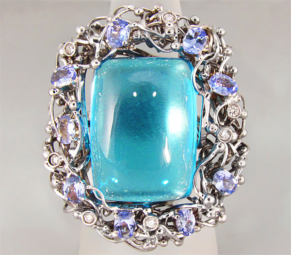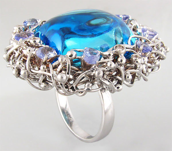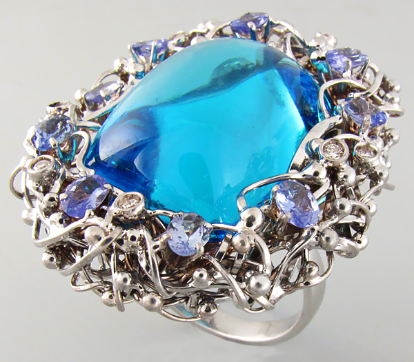Роскошное кольцо с топазом, васильковыми танзанитами и бриллиантами