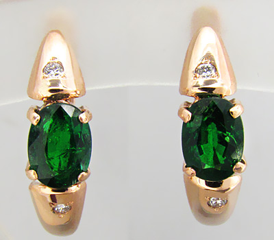 Cерьги, инкрустированные цаворитами гранатами и бриллиантами