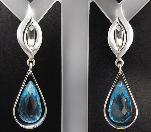 Вашему вниманию предлагаются серьги из стерлингового серебра (925 проба), инкрустированные бриолетами топазов! Размеры серег с петлей 40 х 12 мм. Вес пары 7 г. Ниже приводятся ювелирные характеристики вставок.