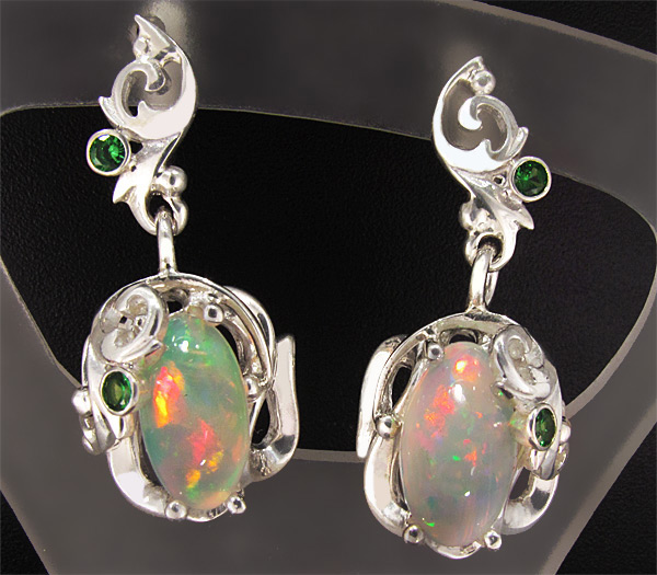 Серьги, инкрустированные опалами и цаворитами гранатами