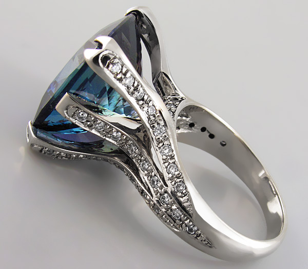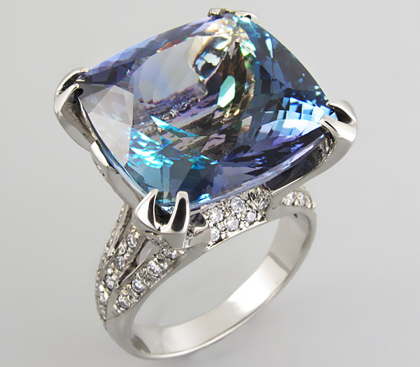 Кольцо с роскошным полихромным танзанитом и 60-ю бриллиантами