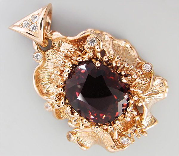 Вашему вниманию предлагается кулон из золота 585 пробы с крупным турмалином рубеллитом и 9-ю бесцветными сапфирами! Диаметр сапфиров 2,1 мм. Размеры кулона с петлей 45 х 30 мм. Вес изделия 22,7 г. Ниже приводятся ювелирные характеристики турмалина.