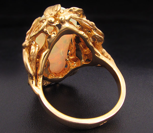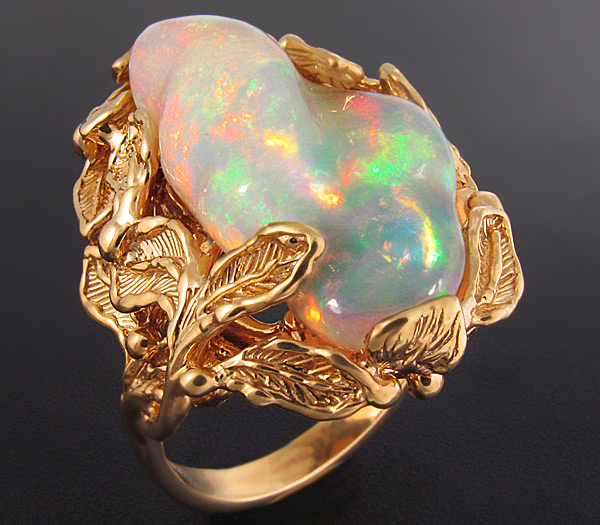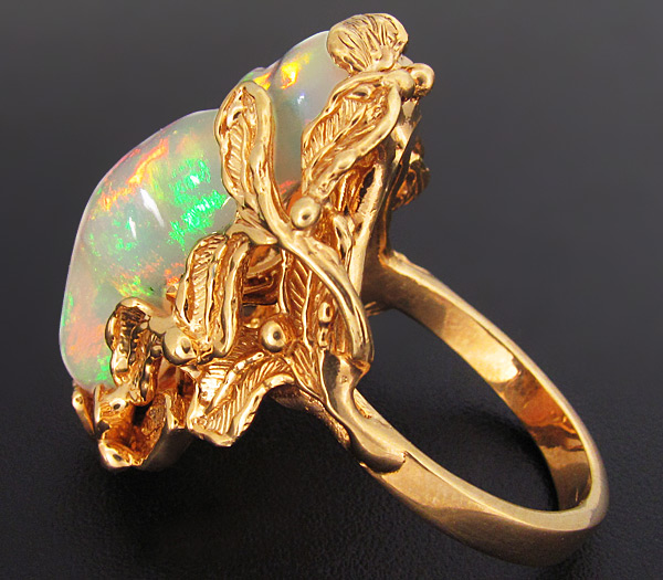 Вашему вниманию предлагается кольцо из золота 585 пробы с удивительным эфиопским опалом! Основные цвета опала: красный/зеленый/желтый/оранжевый. Площадка кольца 28 х 19 мм, высота 11 мм. Вес изделия 12,2 г. Размер 17,5. Ниже приводятся ювелирные характеристики вставки.