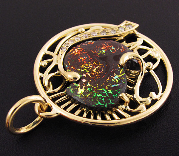 Кулон с красивейшим австралийским болдер опалом и бриллиантами