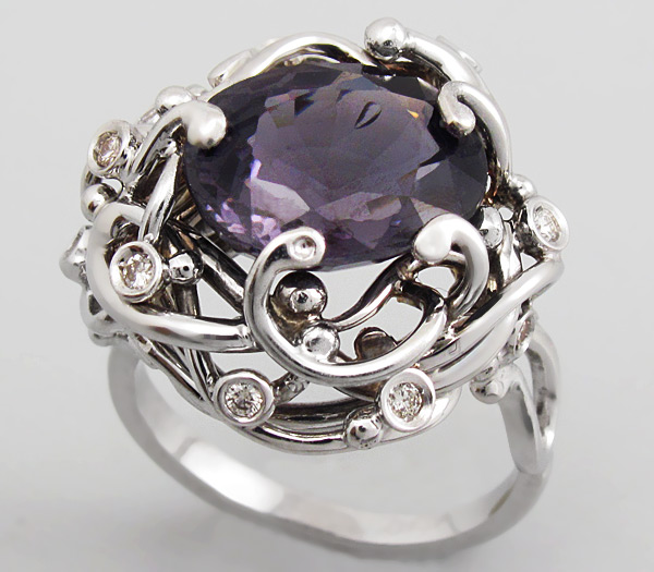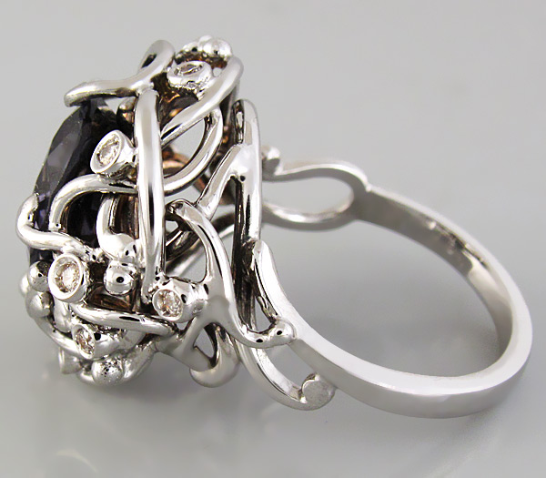Кольцо с серебристо-пурпурной шпинелью и 10-ю бриллиантами