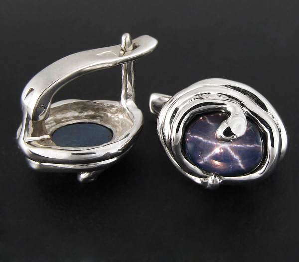 Вашему вниманию предлагаются серьги из золота 585 пробы со звездчатыми сапфирами! Площадка серег 18 х 11 мм. Вес пары 6,5 г. Ниже приводятся ювелирные характеристики сапфиров.