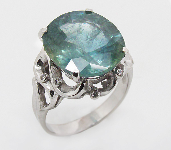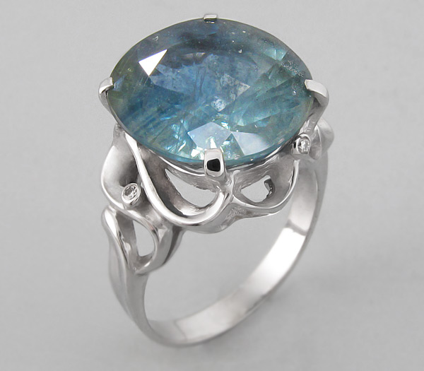Кольцо с крупным сапфиром и 6-ю брилиантами