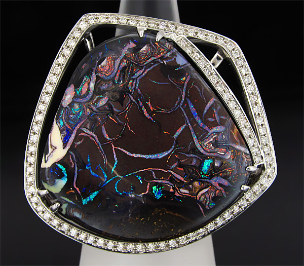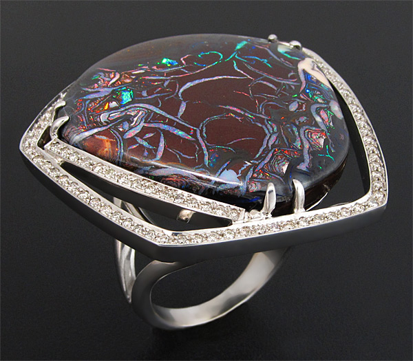 Кольцо с болдер опалом и 88-ю бриллиантами