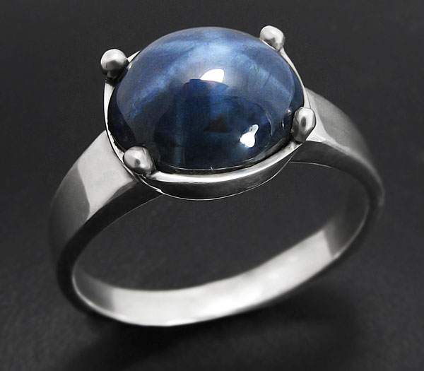 Вашему вниманию предлагается кольцо из стерлингового серебра 925 пробы со звездчатым сапфиром с 6-лучевой звездой! Размеры площадки 11 х 11,5 мм, высота 7,5 мм. Вес изделия 5,4 г. Размер 20. Ниже приводятся ювелирные характеристики вставки.
