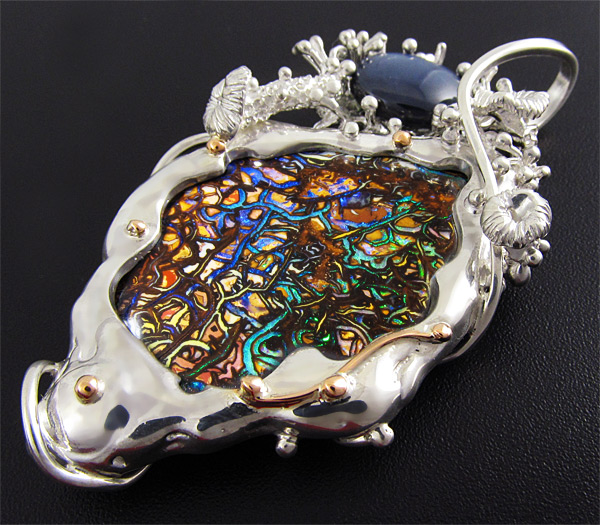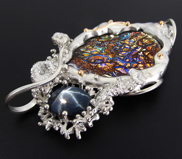 Кулон с болдер опалом и звездчатым сапфиром