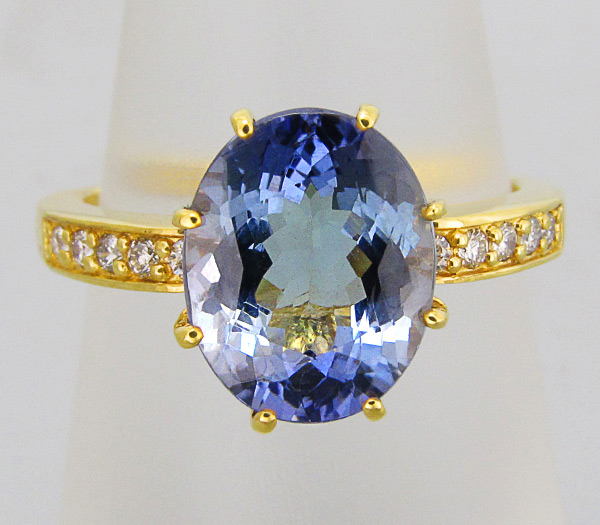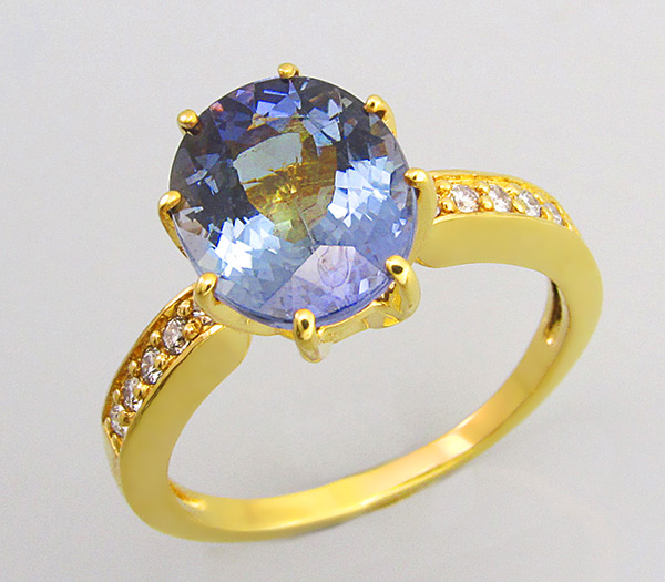 Кольцо с чистейшим полихромным танзанитом и бриллиантами