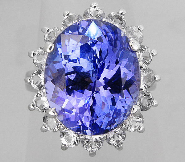 Кольцо с танзанитом и бесцветными сапфирами