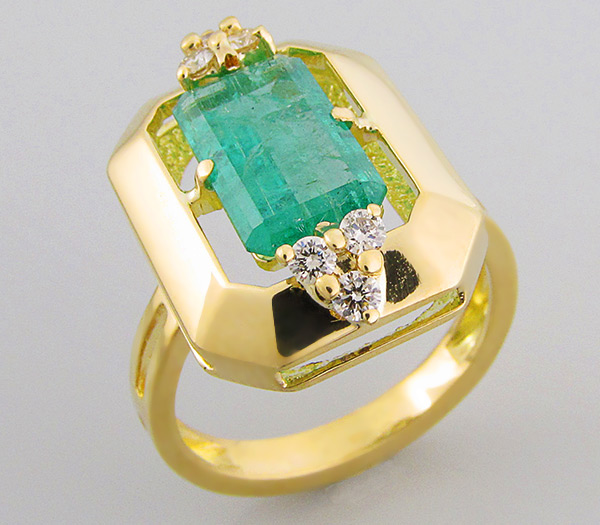 Кольцо с уральским изумрудом и бриллиантами