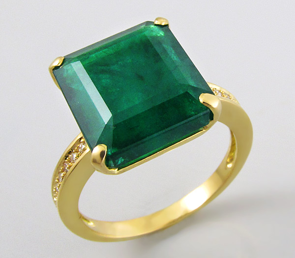 Вашему вниманию предлагается кольцо из золота 750 пробы с изумрудом и 20 бриллиантами общей массой 0,09 карат! Диаметр брилллиантов 1 мм, размеры изумруда 11,5 х 11 мм. Площадка кольца 12 х 11,5 мм, высота 8 мм. Вес изделия 4,6 г. Размер 16,75