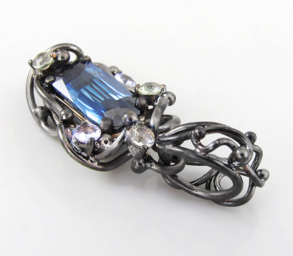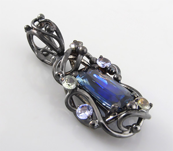 Кулон с синим сапфиром, танзанитами и зелеными сапфирами