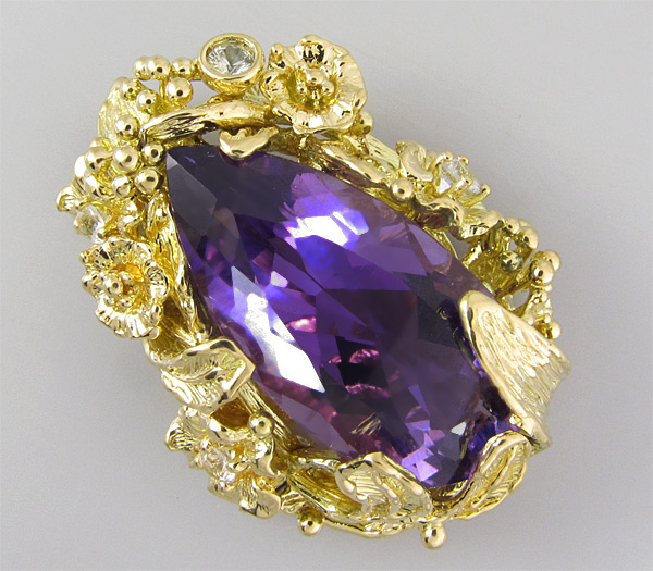 Вашему вниманию предлагается кулон из золота 750 пробы с аметистом и сапфирами! Диаметр сапфиров 2 мм и 3 мм. Площадка кулона 31 х 23 мм. Вес 15,1 г. Ниже приводятся ювелирные характеристики аметиста.