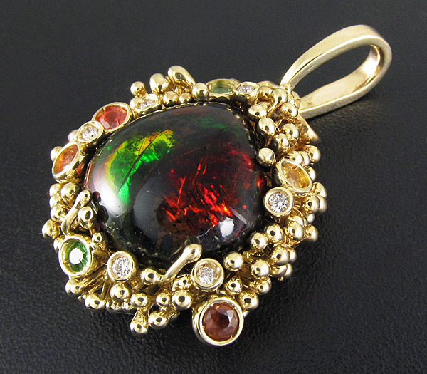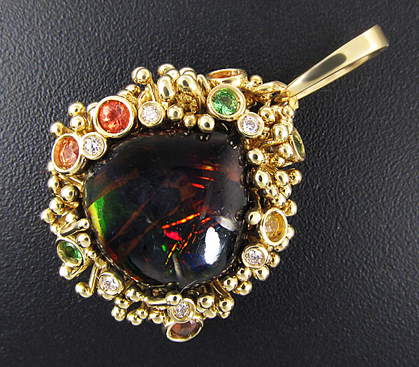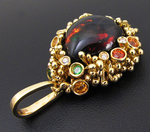 Кулон с черным опалом, цаворитами гранатами, сапфирами и бриллиантами