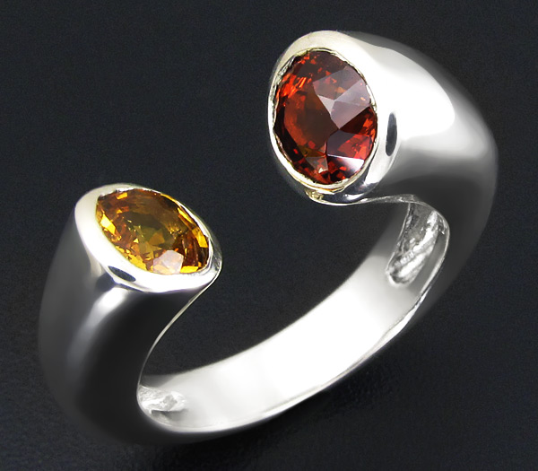 Кольцо с мандариновым спессартином гранатом и золотисто-желтым сапфиром