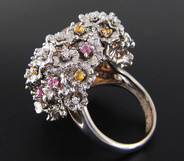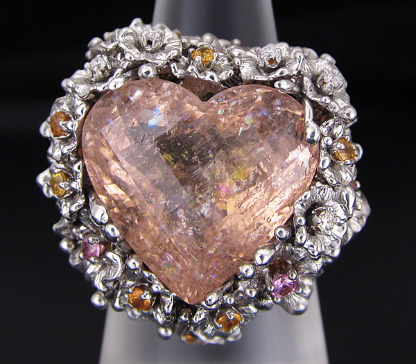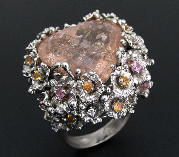 Кольцо с морганитом, разноцветными сапфирами и бриллиантами