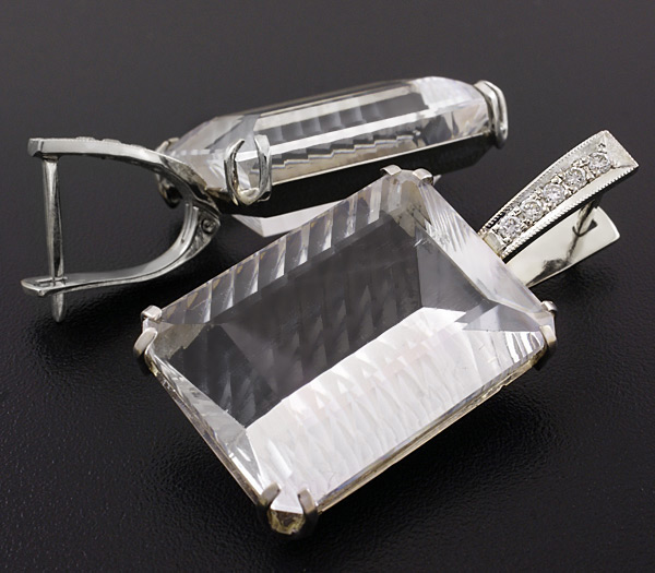 Серьги с бесцветным кварцем и бриллиантами