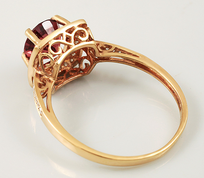 Вашему вниманию предлагается кольцо из золота 14 карат (583 проба) с красивейшей бирманской шпинелью и 38 бриллиантами массой 0,16 карат! Диаметр бриллиантов 1 мм. Площадка 20 х 10 мм, высота 8 мм. Вес изделия 2,5 г. Размер 18. Ниже приводятся ювелирные характеристики шпинели.