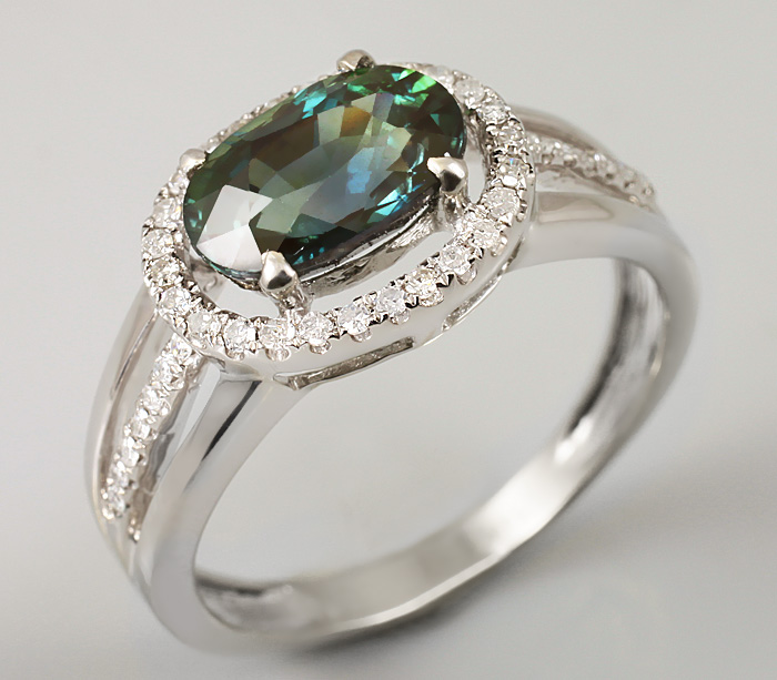 Кольцо с полихромным сапфиром и бриллиантами