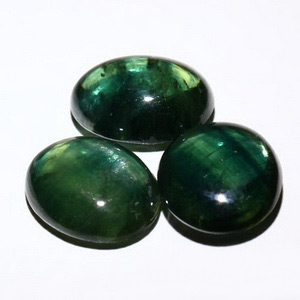 Комплект (серьги + кулон) с кабошонами зеленых сапфиров