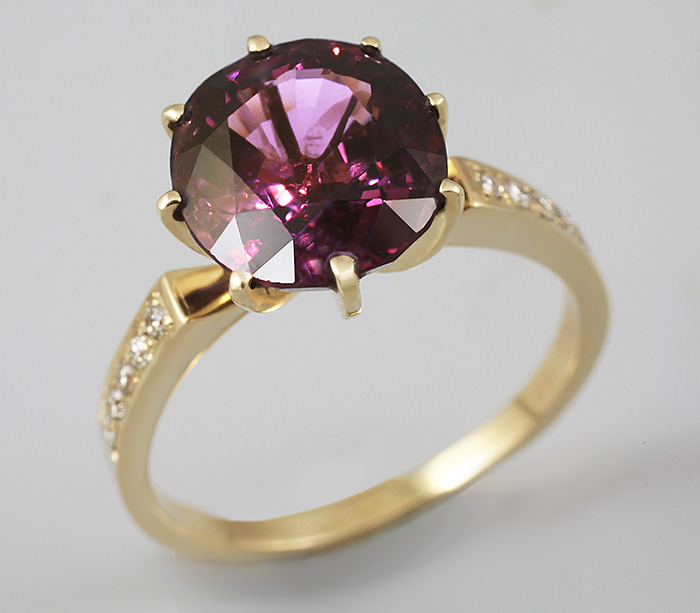 Кольцо c пурпурно-розовой шпинелью и бриллиантами