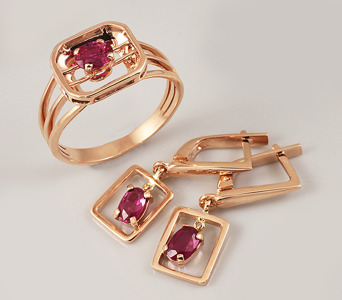 Вашему вниманию предлагается комплект (кольцо + серьги) из золота 585 пробы с рубинами! Вес комплекта 9,2 г.