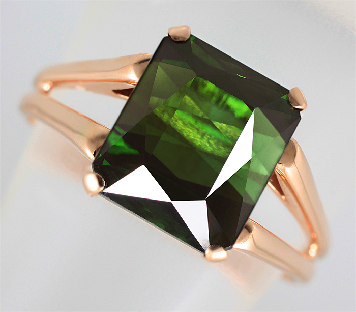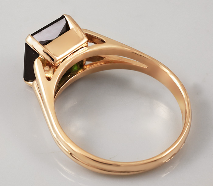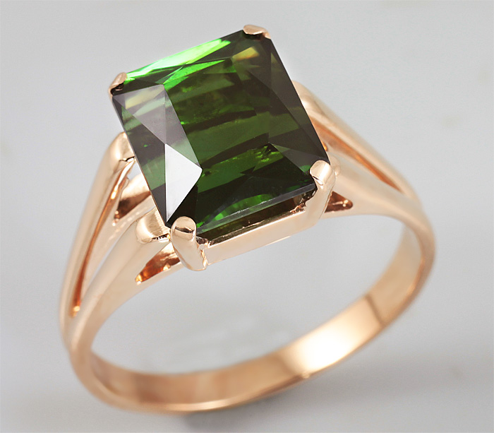 Вашему вниманию предлагается кольцо из золота 585 пробы с чистейшим зеленым турмалином! Площадка 11 х 9 мм, высота 8 мм. Вес изделия 4,8 г. Размер 19. Ниже приводятся ювелирные характеристики турмалина.