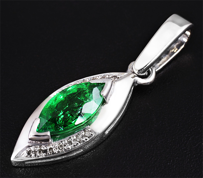 Вашему вниманию предлагается кулон из золота 585 пробы с цаворитом гранатом и 14 бриллиантами массой 0,06 карат! Диаметр бриллиантов 1 мм. Размеры кулона с петлей 33 х 9 мм. Вес 3,5 г. Ниже приводятся ювелирные характеристики цаворита.