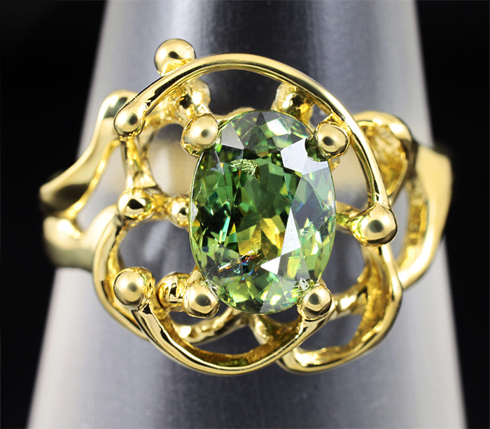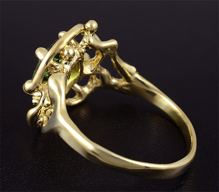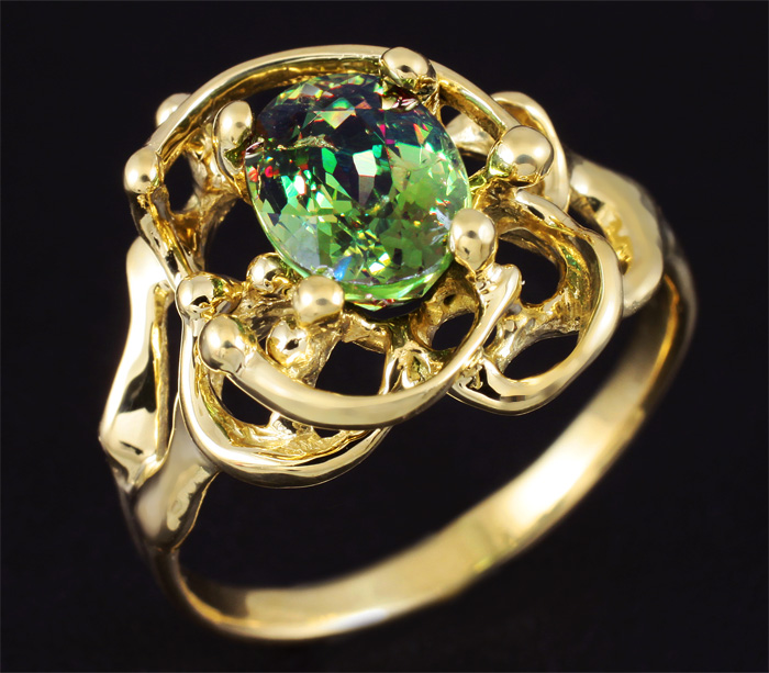 Вашему вниманию предлагается кольцо из золота 750 пробы с демантоидом гранатом! Площадка 19 х 14 мм, высота 5 мм. Вес изделия 4,6 г. Размер 17,5. Ниже приводятся ювелирные характеристики демантоида.