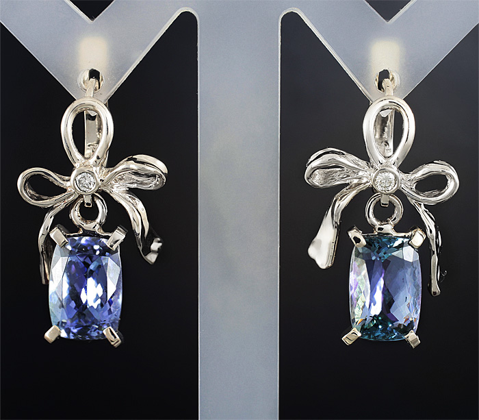 Вашему вниманию предлагаются серьги из золота 585 пробы с парой полихромных танзанитов и бриллиантами массой 0,07 карат! Диаметр бриллиантов 2 мм. Площадка серег 24 х 14 мм. Вес пары 7,4 г. Ниже приводятся ювелирные характеристики танзанитов.