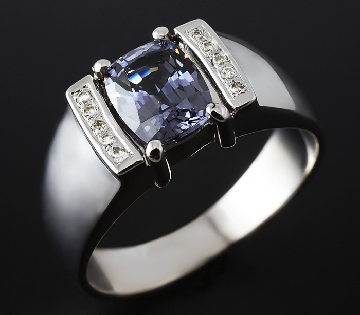 Кольцо с чистейшей серебристой шпинелью и бриллиантами