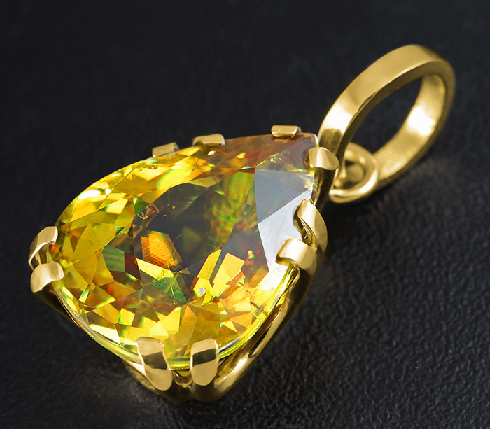 Вашему вниманию предлагается кулон из золота 585 пробы с золотистым сфеном! Размеры кулона с петлей 22 х 11 мм. Вес 2,7 г. Ниже приводятся ювелирные характеристики сфена.