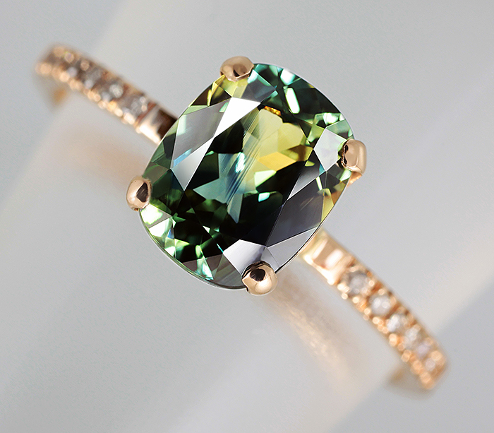 Кольцо с полихромным сапфиром и бриллиантами