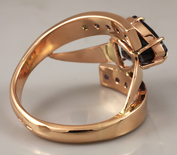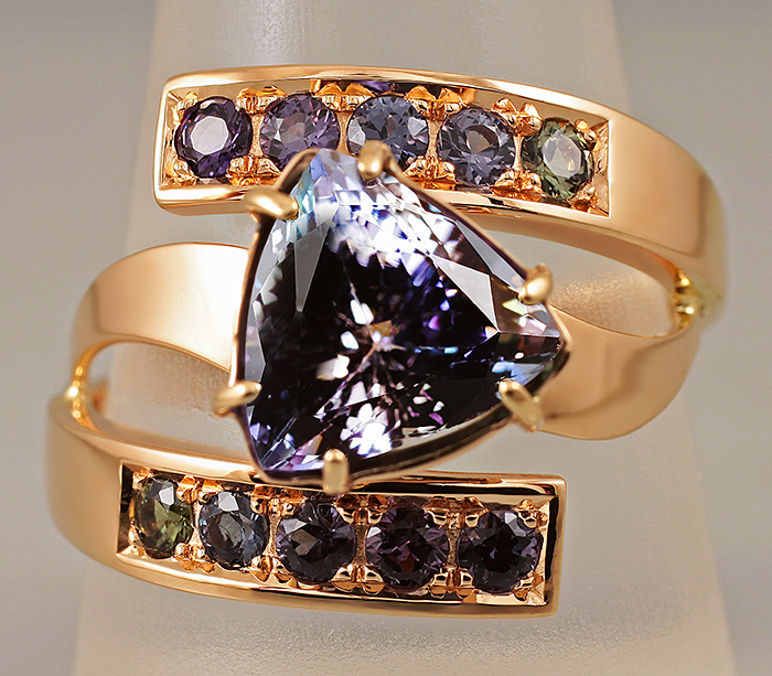 Кольцо с танзанитом и гранатами с александритовым эффектом
