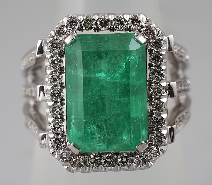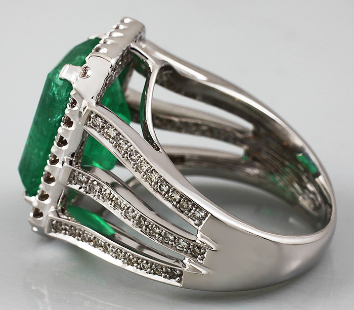 Кольцо с крупным уральским изумрудом и бриллиантами