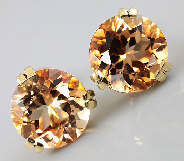 Вашему вниманию предлагаются серьги из золота 585 пробы с империал топазами! Размеры пусет 11 х 11 мм. Вес пары 4,9 г. Ниже приводятся ювелирные характеристики топазов.