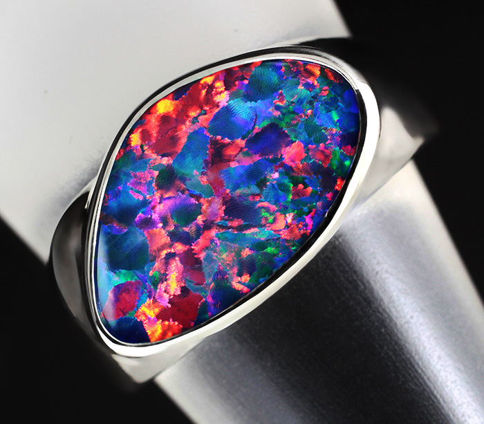 Вашему вниманию предлагается кольцо из стерлингового серебра (925 проба) c опалом Жильсона! Подложка — натуральный болдер опал. Основные цвета опалесценции опала: красный/желтый/зеленый/синий/фиолетовый. Площадка 19 х 12 мм, высота 4 мм. Вес изделия 7,3 г. Размер 21. Ниже приводятся ювелирные характеристики опала.