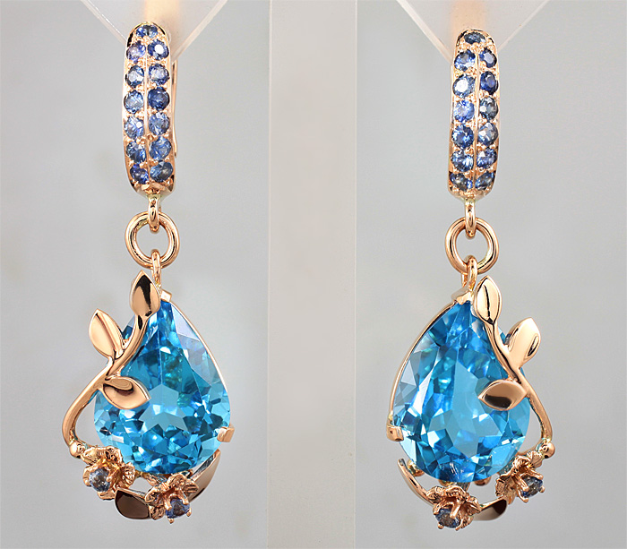 Вашему вниманию предлагаются серьги из золота 585 пробы с топазами и синими сапфирами! Диаметр сапфиров 2 мм. Размеры серег с петлей 44 х 14 мм. Вес пары 12,7 г. Ниже приводятся ювелирные характеристики топазов.