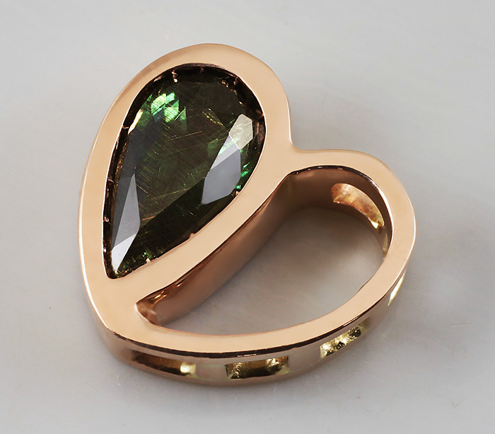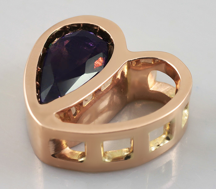 Двусторонний кулон-сердце с гранатом с александритовым эффектом