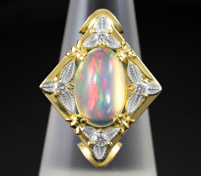 Кольцо c эфиопским опалом и бриллиантами