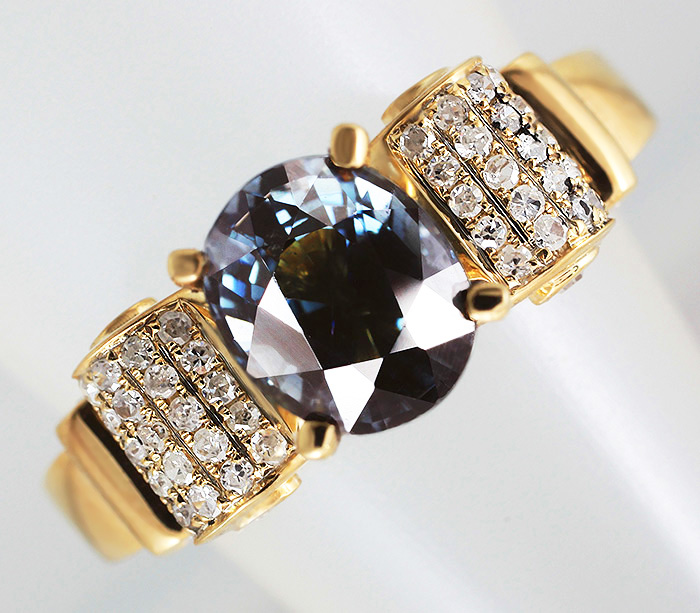 Кольцо с зеленовато-голубым турмалином и бриллиантами