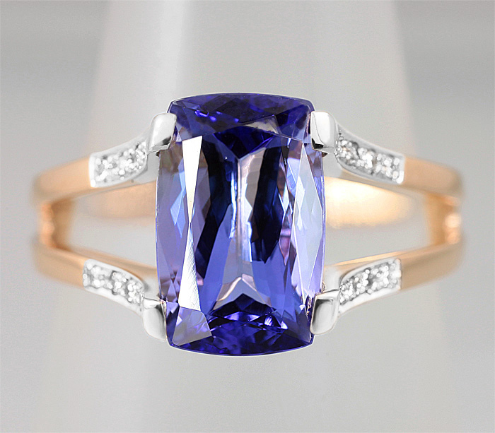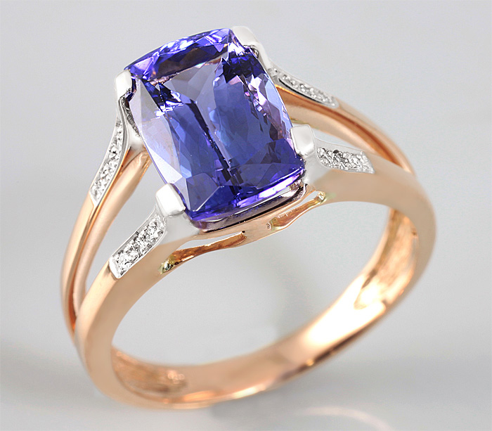 Кольцо с великолепным танзанитом и бриллиантами