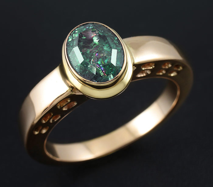 Вашему вниманию предлагается кольцо из золота 585 пробы с алекандритом! Размеры вставки 8 х 6 мм. Площадка 10 х 8 мм, высота 8 мм. Вес изделия 5,9 г. Размер 18,5.