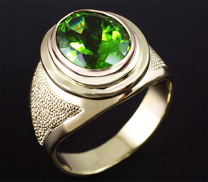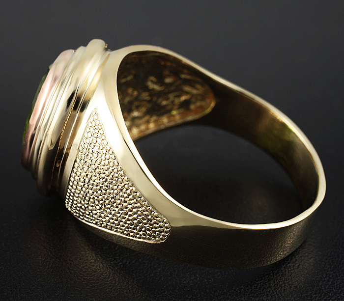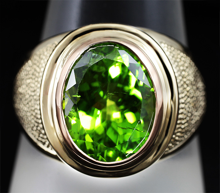Вашему вниманию предлагается кольцо из золота 585 пробы с перидотом! Площадка 17 х 15 мм, высота 8 мм. Вес изделия 9,6 г. Размер 22. Ниже приводятся ювелирные характеристики перидота.