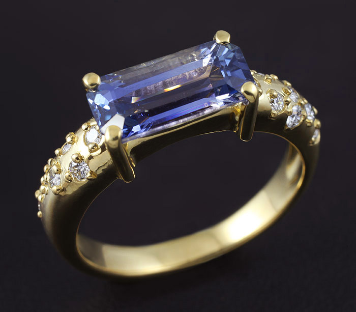Кольцо с чистейшим голубым сапфиром и бриллиантами
